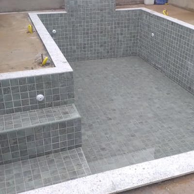 Piscinas de fibra e azulejo